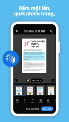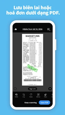 Biến thiết bị di động của bạn thành một văn phòng di động mạnh mẽ với Adobe Scan. Ứng dụng đột phá này từ Adobe cho phép bạn dễ dàng số hóa mọi tài liệu giấy, từ hóa đơn nhỏ đến hợp đồng phức tạp, chuyển chúng thành các tệp PDF hoặc JPEG chất lượng cao. Với công cụ làm thẳng trang tiên tiến, Adobe Scan tự động nhận diện và điều chỉnh các cạnh cong vênh hay nghiêng lệch, đảm bảo mọi bản quét của bạn luôn sắc nét, chuyên nghiệp và hoàn hảo như thể được tạo ra từ máy quét chuyên dụng.