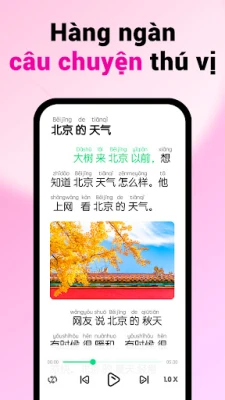 HelloChinese không chỉ là một ứng dụng, mà là một trải nghiệm học tập cuốn hút, nơi bạn "vừa chơi vừa học" để kiến thức thẩm thấu tự nhiên. Khám phá hơn 1000 câu chuyện hấp dẫn được phân cấp theo trình độ, cùng hơn 2000 đoạn clip sinh động từ người bản xứ, mang đến cho bạn cơ hội tiếp xúc chân thực với ngôn ngữ và văn hóa Trung Quốc. Các bài học phát âm chuyên biệt được thiết kế kỹ lưỡng cho người mới bắt đầu, đảm bảo bạn xây dựng nền tảng vững chắc ngay từ những bước đầu tiên.